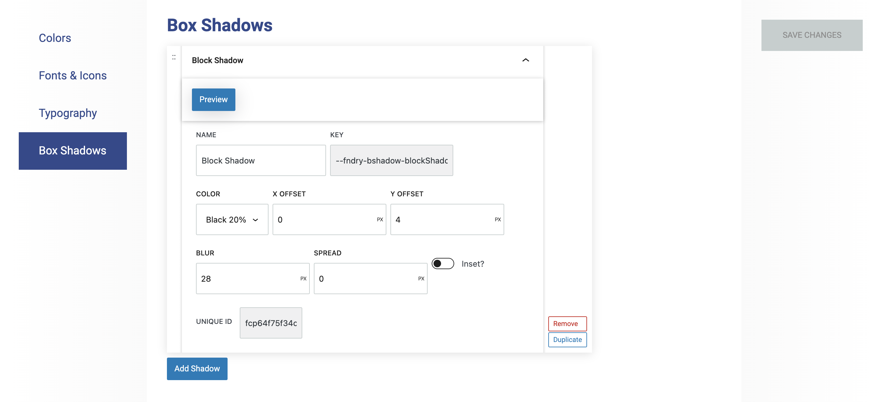 Box shadows create a shadow effect. There are several blocks on which these can be set: Container, Column, Query Post Template, Logo Grid, and Grid Block.
