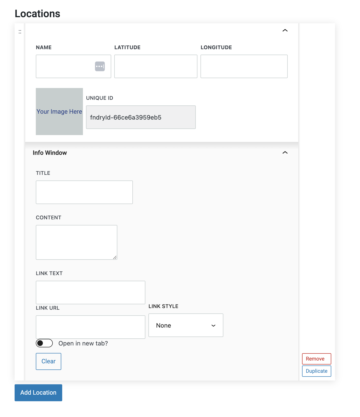 Icon Image: This is the custom pin or marker icon that will represent the location on your map. You can upload an image to make the marker stand out or match your website’s branding.