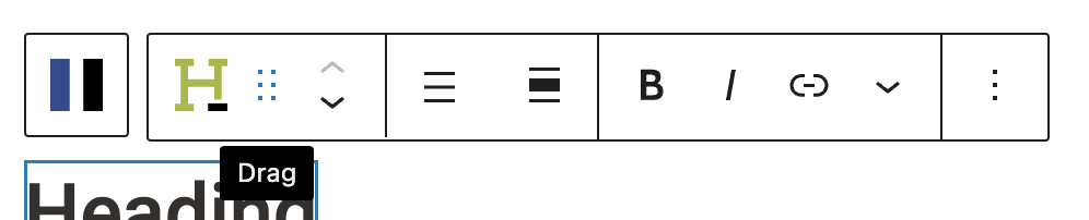 Activating the Drag Tool: When you select a block, a drag icon (represented by six dots in a vertical line) appears on the left side of the block in the toolbar. You can click and hold this icon to activate the drag function.