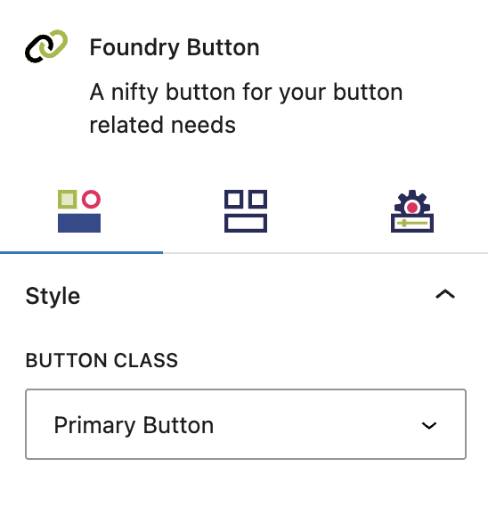 This setting allows you to configure the button’s appearance by selecting from a dropdown menu of preset button and link styles, which are set in the Button & Link Styles > Buttons area.