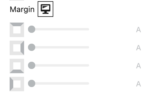 These sliders, with a range from 0 to 12, control the amount of exterior space there is around the button and adjacent objects. Each one controls the margins around the top, bottom, left, and right of the button.