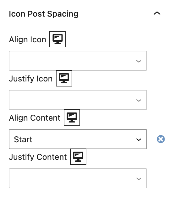 These settings utilize flex alignments to determine how your icons and content align within each Grid Block item’s container. All blocks within the Grid Block item are set as a Column display.