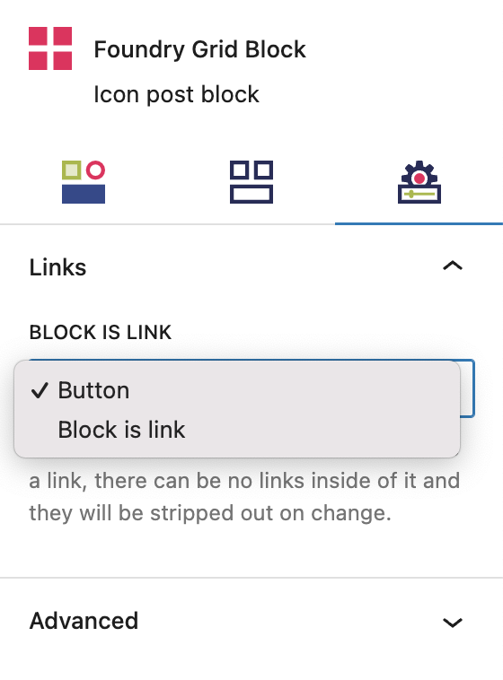 This setting determines if a Button block is included with each Grid Block item, or if the entire block is clickable.