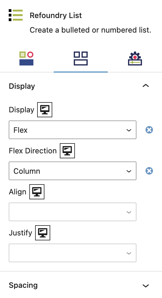 The List Block is how you create bullet or numbered lists in Refoundry. It’s pretty straightforward! Use the List Block to break up your text content, and showcase specific points.