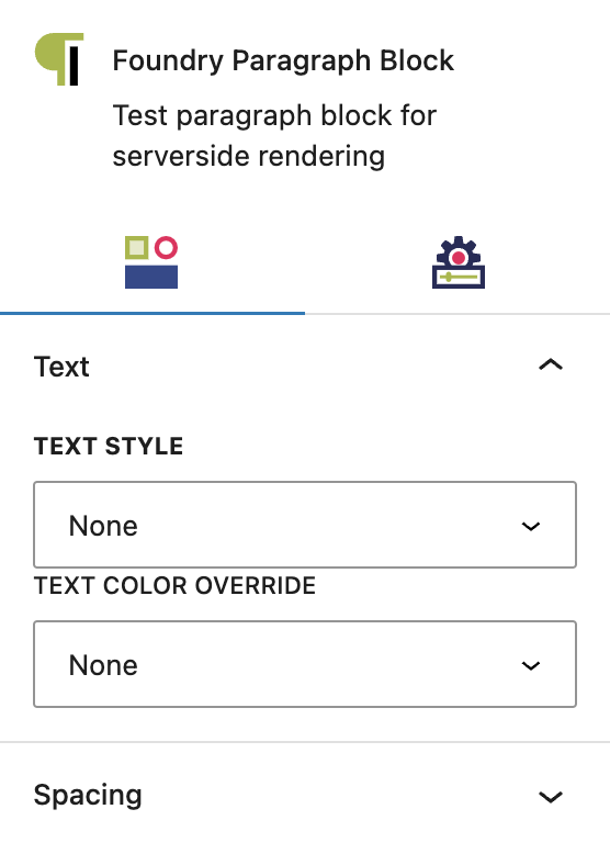 The spacing settings are about the spacing around the Paragraph Block in relation to other elements of the page.