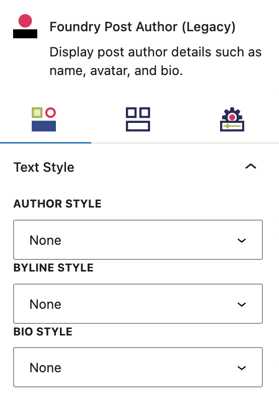 These drop-down options allow you to choose the text style for different parts of the Post Author Block.