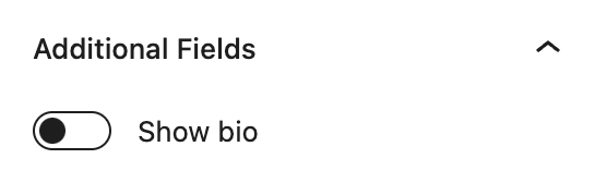 Choose if you want to show the author’s full bio beneath their name. The default is toggled off. The author’s bio is configured under the user’s WordPress account – if you click to edit the author under Users, you will find the bio field.