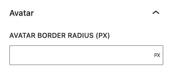 The border radius controls the border radius, rounding the edges of the avatar using a percent ratio in pixels (px).