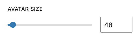 Avatar Size uses a slider to control how big or small the author’s avatar appears in the Post Author Block. You can also enter a numeric value, this is set in pixels.