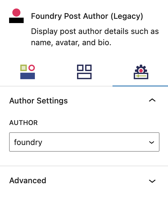 This section is simply where you set the author for this block. All other settings like avatar and “show more by author” depend on this setting.