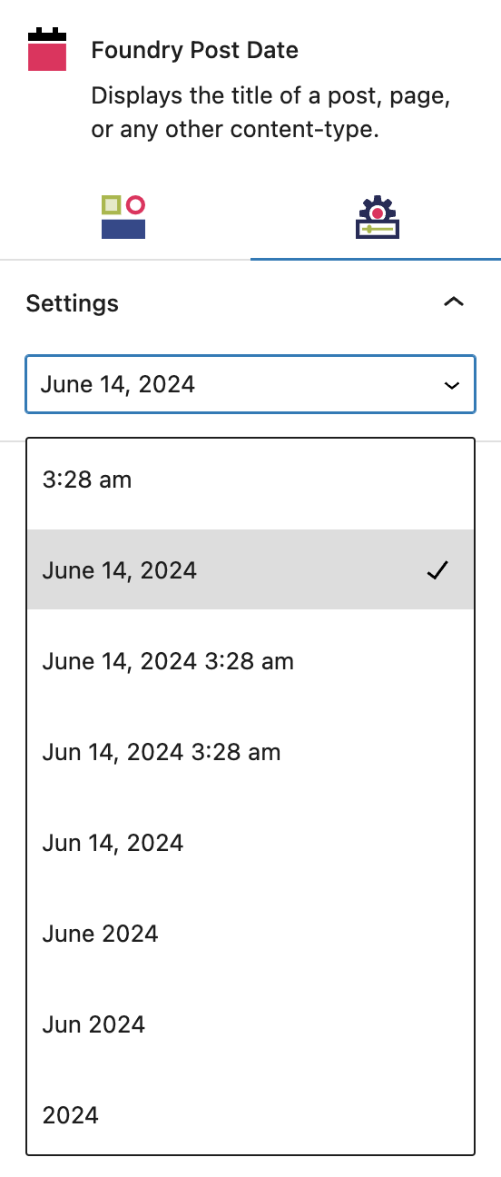 You can customize the Post Date Block using Style and Settings options, giving you great flexibility in how you tailor elements to your design.