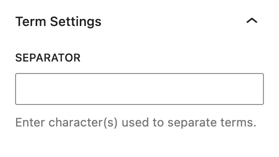 Choose the character(s) that should separate terms, if multiple terms are applied to one post. For example: “,” or “–” or “|” symbols.