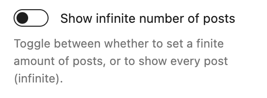 This setting is hidden if the Show infinite number of posts toggle is set to “on.”