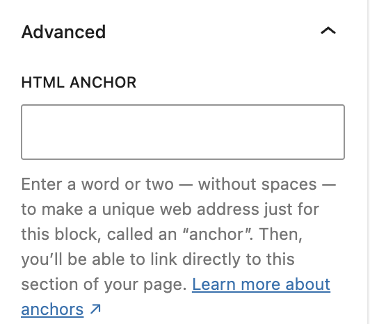 This allows you to enter a unique ID identifier, so you can create a URL for this specific block within the page.