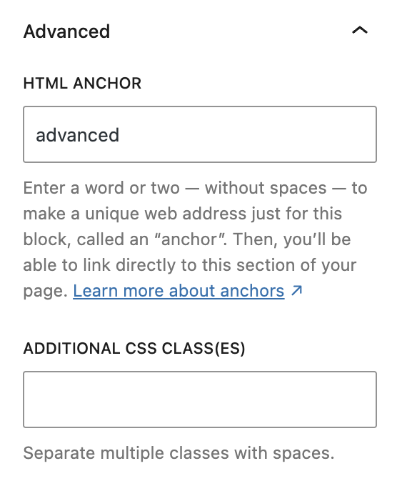 This allows you to enter a unique ID identifier, so you can create a URL for this specific block within the page.
