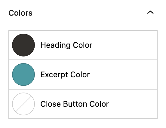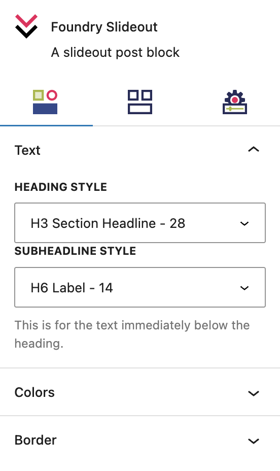 Color settings govern the color of the text and buttons within the Slideout Block.
