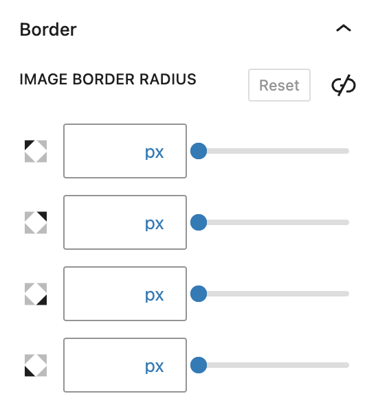 This value rounds the corners of the image’s outer border edge, for all images within your Slideout Blocks. When enabled, you can control how much each corner of the Container Block is rounded. Use ‘Reset’ to bring everything back to zero.
